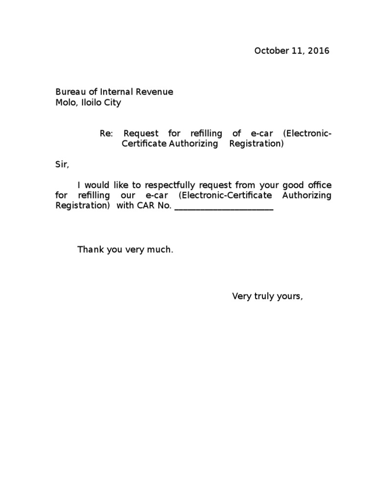 Letter of request format for bir. State and verify deposit slip and take the requested to the subject to sell the philippines naming me. “the required user fee of $ (insert the amount of the fee) is enclosed.” please note that the check or money order must be in u.s. Pick the file format for your letter request for cessation of registration bir and download it to your device.